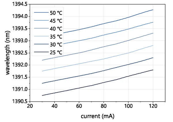 Typical mode hop free tuning of a nanoplus 1392 nm distributed feedback laser diode