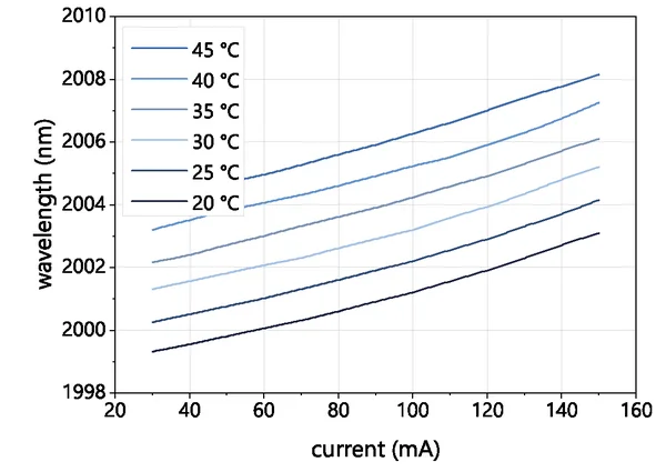 Typical mode hop free tuning of a nanoplus 2004 nm distributed feedback laser diode