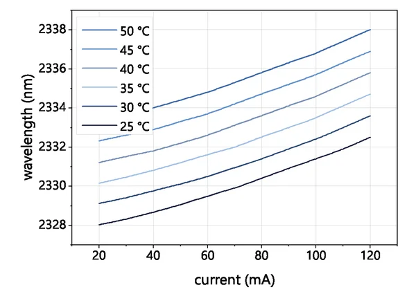 Typical mode hop free tuning of a nanoplus 2334 nm distributed feedback laser diode
