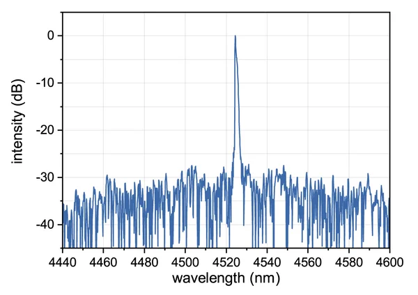 Typical spectrum of a nanoplus 4524 nm distributed feedback interband cascade laser