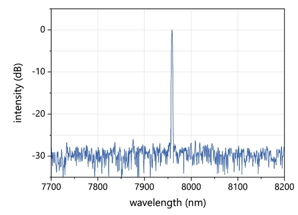 Typical spectrum of a nanoplus 7970 nm distributed feedback quantum cascade laser (DFB QCL)